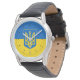 Se upp med flagga i Ukraina, en blå och gult flagga med den ukrainska jacka av arm (emblem) med en trident i mitten