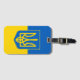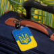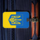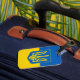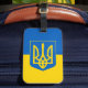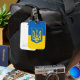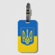 Bagagetagg med flagga Ukraina, en blå och gult flagga med den ukrainska jacka av arm (emblem) med en trident i mitten