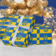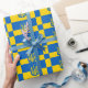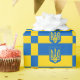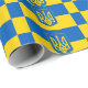 Papper med Ukrainas flagga, en blå och gult flagga med den ukrainska jacka av arm (emblem) med en trident i mitten