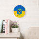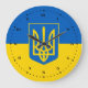 Stor klocka med Ukrainas flagga, en blå och gult flagga med Ukrainas jacka av arm (emblem) med en trident i mitten