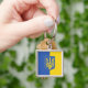 Ukrainas Flagga och Trident Fyrkantig Silverfärgad Nyckelring