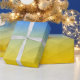 Ukrainas gult, blått, geometriskt nät mönster presentpapper