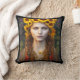 Dekorativ kudde har ett fantastiskt vackert porträtt på en ung ukrainsk flicka med långa hjärnor, solros krona och amuletmönstrad bakgrund, skapat med AI-renderingsoftware. Slava Ukrainini!