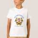 Färgfulla barn t-shirt har en central folkart, ukrainsk flicka i stil i traditionell kostym med stor solrossand och den nationella salen "Glory to Ukraina!" Glory to Heroes!" på både engelska och ukrainska. Blått och gult Ukraina flagga färg gräns