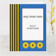 Blått och gult kort med ränder och en solros. Ladda upp ditt eget 4 x 6 foto. Grattis mamma på insidan.