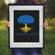 Visa ditt pride för ditt ukrainska arv med den här poster som innehåller rotad träd-silhuett i blått och gult färg i Ukrainas flagga med anpassadet "ukrainska rötter" på svart bakgrund.