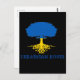 Visa ditt pride för ditt ukrainska arv med det här vykortet med rotad träd-silhuett i blått och gult färg i Ukrainas flagga med anpassadet "ukrainska rötter" på svart bakgrund.