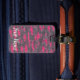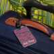 Ullstruktur i sticka med rosa och grått färg bagagebricka