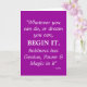 Goethes berömd citerar: "Spelar ingen roll du kan göra, eller drömma om att du kan, börja det. Blodfärdighet har Geni, Power & Magic in it" har inspirerat folk till generation..och nu finns ord på vackra CardBard-hälsningskort. (vackert nog att ramas in!) Skicka en till alla som måste påminnas om att den oändliga kraften hos Universum finns tillgänglig för alla som utnyttjar den med sitt hjärta, sinne och sinne. En del av varje försäljning gynnar bröstcancerforskningsstiftelsen.