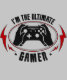 Om han är den ultimata spelaren, så behöver han den här skjortan! Den traditionella spelarens svarta logotyp är innesluten i en röd, invändig oval med röda blixtar bredvid den. Den svarta texten ovanför och under emblemet säger "Jag är Ultimate Gamer".