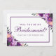 Ultralätt Lila Watercolor Blommigt Bröllop blir mitt Bridesmaid Card - Lila Script - Lila Ram