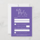 Svarskort från lila iris botaniska bran art vattencolor art bröllop. Anpassa med ditt eget namn och data. Modernt botaniskt konstverk som målats i vattenfärg av Sarah Trett www.sarahtrett.com för www.mylittleedenweddings.com