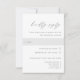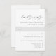Designad för att matcha våra ultraminimala bröllopsinbjudningar. En vacker typografibaserad design med minimalistisk känsla, med ett modernt, svart kalligrafiskt skript och klassisk serif-skrift. Anpassa till önskat datum för OSA och måltider som är justerade vid högerna.