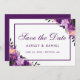 Blommigten Ultra Violet Lila Watercolor sparar för meddelande om datum Förlovning - Lila Ram - Lila text - Lila bakåt