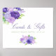 Kort och presenter för möhippa av vattenfärgad blommigt poster med ultraviolett från färg 2018 med skuggor av lila. Blommor är bl.a. vattenkraft, lavender, ponnyer och ro.