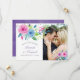 Hand målade vattenfärgen ro bröllop spara datum fotokort med ultraviolett färg under 2018 med blå nyans, rosa och lila.