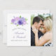 Fotokort för vattenfärgen blommigt bröllop spara datum med ultraviolett färg under 2018, med skuggor av lila- och sage grönt accents. Blommor är bl.a. vattenkraft, lavender, ponnyer och ro.