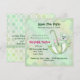 Söt babyflicka eller pojke shower-inbjudan med bedårande mintfärgad teddybjörn som åker i ett paraply, stora prickar och andra speciella detaljer. Anpassa med din information.