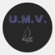 Ett svart klistermärke med U.M.V. och en surfare.