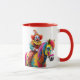 Un clown monte un cheval arc-en-ciel. mugg