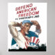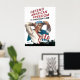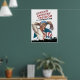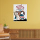 A WWII vintage poster showing Uncle Sam with rolloed up sleeves, removing his top hat in favor of a work cap. A background of war time factories.