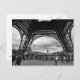 I berömden Eiffel torn visas det underbara antalet besökare på ikonen. Under sitt stål ram har detta vykort ett svartvitt foto av hundratals besökare.