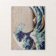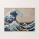 Hokusai: Kanagawa Oki Nami Ura, ca. 1832 Vintage Japanska Print, visar en enorm våg nedtryckt på båtar med tanke på Mount Fuji i bakgrunden.
