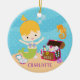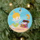 Anpassa och datera söt blond sjöjungfru Jul Ornament sätter på en blå vatten-bubbelbakgrund med en skattkista och seahorse. Besök vår butik för att se den här vackra sjöjungfrun i en mängd olika hår- och klädesplagg färg.