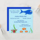 Denna förtjusande havslivinbjudan är perfekt för barns födelsedagsfester! Designen presenterar ett ljust - slösa vattenbakgrund. I vatten är ett stort blåttval, en skola av orange- och vitclownfisken och en vänlig röd hummer! Detta är inbjudningar perfekta för under den themed födelsedagsfesten för havet. All texten är fullständigt anpassadet som passar dina behov.