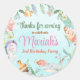 Den här söta vattenfärgsdekalen är för en Födelsedagsfest med ett undertema i havet. Den kan användas för att sätta på sig eller vad som helst för att säga tack för att du kom. Du kan också ändra ordalydelsen till använda som ett kuvertförsegling på inbjudan eller tack.