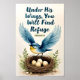 En akvarell fågelbo med ägg, omgiven av orden "Under His Wings, You Will Find Refuge"