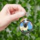 Nyckelkedja med detaljer från en målning av en siamesisk katt under körsbärets blommar.
