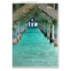 Under vyer av rustic Bahama pier med turkos över havet vatten.