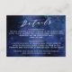 Den här bröllop-informationen/informationskortet för chic har en mörk blått bakgrund för himmel, elegant-typografi och ett modernt kalligrafiskript som säger "Detaljer". Det skulle vara perfekt för ett par som är intresserade av astronomi och rymden - eller helt enkelt för alla som har natt bröllop! Se samlingen för samordnande artiklar.