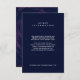Fira ett speciellt tillfälle med detta vackra Under Stars temainbjudningsdesign och ge gästerna ytterligare information med det här kortet som du anpassar efter dina behov. På framsidan står den vita texten mot en djup midnattsblått, och på baksidan hittar vi vår koordinerande stjärnbakgrund i himmel i marinen och violett fullt av små vita stjärnor. Skapar en modern, elegant och snyggt inbjudan. Det finns också möjlighet att matcha delar.