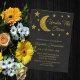 Under stjärnornas quinceanera-evenemang. Svart mörnattsbakgrund himlar med guld måne och stjärnor