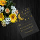 Under stjärnorna, födelsedag, quinceanera och söta 16 evenemang. Svart mörnattsbakgrund himlar med guld måne och stjärnor