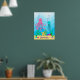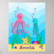 En söt poster som visar en rosa bläckfisk en turkos manet och en gul sjöstjärna som njuter av en simtur under havet. Anpassa med ditt valda namn eller låt det vara utan.