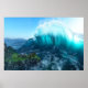 En massiv våg häver sig från det grova havet, skimrande vit och blå och turkos i det bländande solljuset. Under vågen, på väg att dras under, ligger en liten stad med ett slott och medeltida stugor byggda på en klipputsprång.