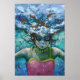 Under Vatten Art-utskrifter, -tillbehör och -presenter finns vår ursprungliga målning av Traci Van Wagoner av en flicka som bär en rosa badande kostym och glasögon, simmar under vatten och blåser bubblor. Ta en språngbräda idag och njut av sommaren med vår roligt konst av en undervattenssimmare. Låt sommartid börja!