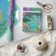 Sandra Gales ursprungliga vattenfärgsmålning av en fantastisk guldsjöhäst som flyter ovanför en tropisk rev under havet. Den Underbara bilden för barn, tonåringar och vem som helst som kärlek havshästar och havet. Gör en underbar badrumsdesign också!