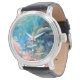 Vattenfärgsgrafik från den Underbara Barriärreven med fisk, korall och sjögräs i akvblått hav vatten.