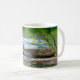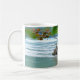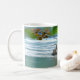 En vacker scen av en underbar blå heron på strandlinjen på fantastisk kaffe koppar.