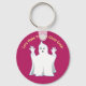 Underbar söt Trumpy-spöknyckelkedja. Trumpy spöket är på burgundisk bakgrund. Låt oss gör att trumpy spöke underbart kan vara personlig.