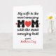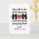 Visa din fantastiska fru lite kärlek och en nypa fräckhet med det här djärva och lekfulla kortet! Med det busiga budskapet ”Min fru är den mest fantastiska mamma med den mest fantastiska stjärten” är det den perfekta kombinationen av sött och hett. Oavsett om det är mors dag, hennes födelsedag, Alla hjärtans dag eller en vanlig tisdag, garanterar detta kort att hon skrattar, rodnar och känner sig totalt beundrad. Perfekt för den fru som jonglerar moderskapet och fortfarande lyckas se oemotståndlig ut. En flirtig överraskning från make till hustru som hamnar på rätt not av kärlek och humor.