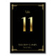 Underbara Gatsby Art Deco bröllop-kort för bordsnummer med gyllene nummer 11 och anpassade, där du kan lägga till datum för namn och bröllop, tryckt på svart bakgrund