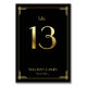 Underbara Gatsby Art Deco bröllop-kort för bordsnummer med gyllene nummer 13 och anpassade, där du kan lägga till datum för namn och bröllop, tryckt på svart bakgrund