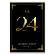 Underbara Gatsby Art Deco bröllop-kort för bordsnummer med gyllene nummer 24 och anpassade, där du kan lägga till datum för namn och bröllop, tryckt på svart bakgrund