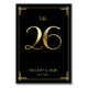 Underbara Gatsby Art Deco bröllop-kort för bordsnummer med gyllene nummer 26 och utbytbar text, där du kan lägga till datum för namn och bröllop, tryckt på svart bakgrund