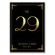Underbara Gatsby Art Deco bröllop-kort för bordsnummer med gyllene nummer 29 och utbytbar text, där du kan lägga till datum för namn och bröllop, tryckt på svart bakgrund